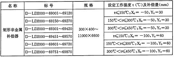 矩形非金屬補償器根據(jù)不同的工作溫度和補償量進(jìn)行分類,編目如下: