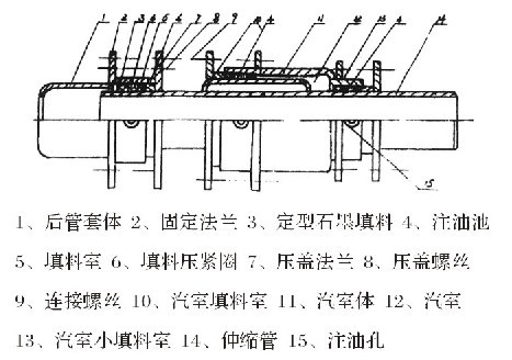 在國內近期,生產出LTW高溫堵漏劑,它的耐溫30O——600℃,工作極限壓力是10MPa。鞏義市鑫科管道設備廠將高溫堵漏劑應用在補償器上,將直流式無推力補償器,改制成注油式直流介質無推力補償器,解決了補償器長期工作,出現微小的滲漏問題。鞏義市晨光波紋管公司將LTW高溫堵漏劑,用60MPa。的高壓注射槍,將油劑注射到填料室內,使填料與料室內徑和伸縮管外徑壓緊,油劑本身無毛細管,又有熱脹冷縮的性質,故造成補償器長期工作中,不產生滲漏。