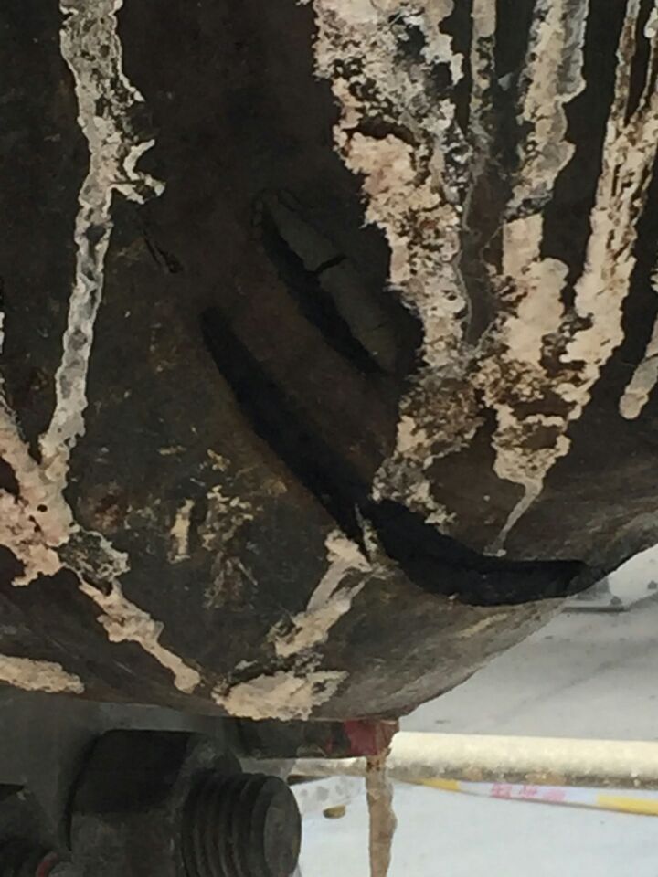 偏心和同心橡膠接頭皆為三元乙丙橡膠生產,耐壓20公斤,316L不銹鋼法蘭,用戶使用的環境為化工行業,水樣催化劑的介質,常理來說,這類介質,對橡膠球體本身并不會造成什么影響,為什么橡膠接頭會開裂呢?通過圖片情況我們可以看到,橡膠球體外部膠層開裂內部并無泄露現象,這種情況一般是由于壓力過大導致的,但用戶水泵打開壓力又并未超出橡膠接頭承受壓力范圍,所以這一情況進行排除,第二種原因就是由于生產問題,內外膠層貼合不嚴密的情況下,由于溫度影響造成內外膠層分離,進而橡膠接頭承壓能力減弱,在運行過程中容易造成開裂。